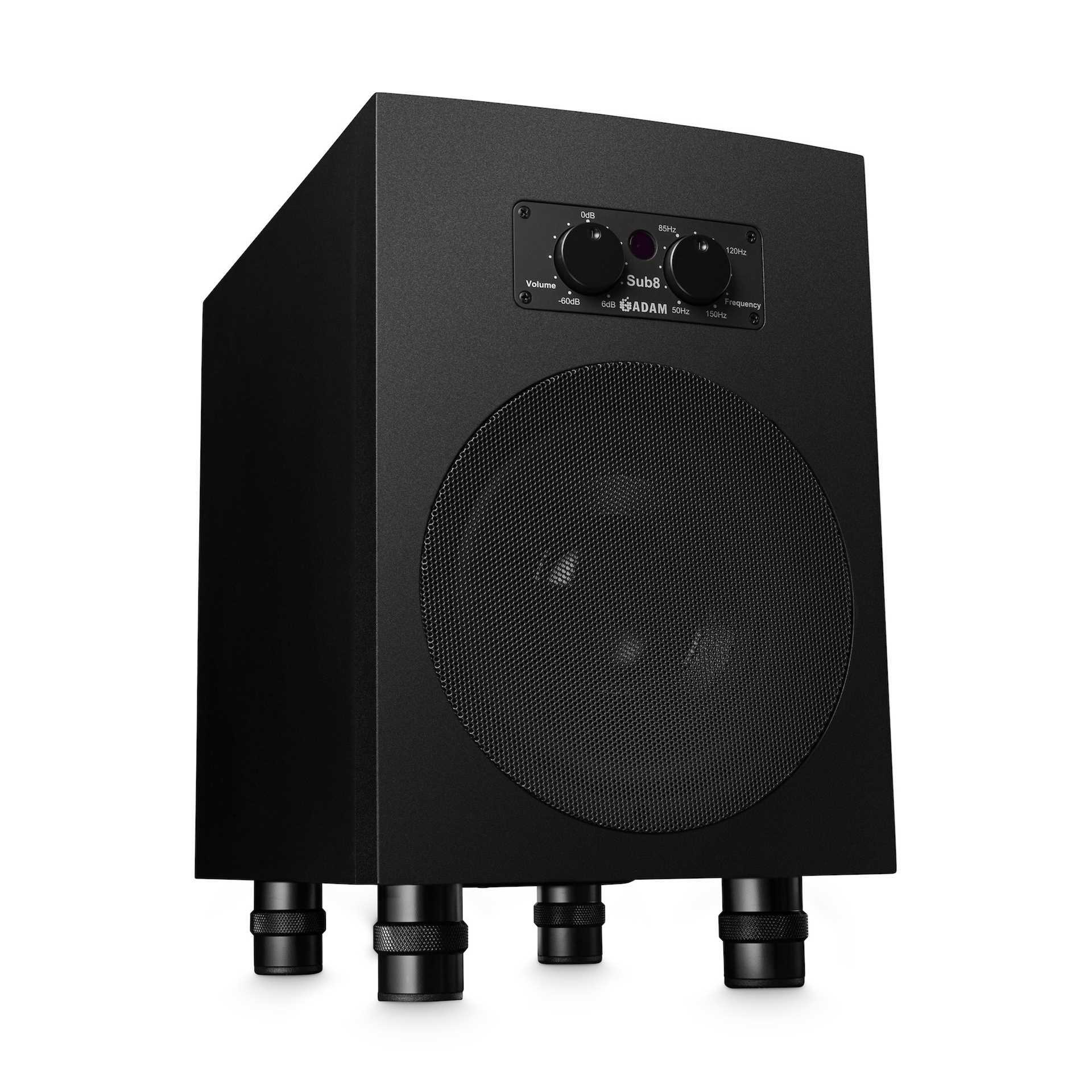 SUB8 är en 8" subbas från Adam Audio på 160 watt RMS med ett frekvensomfång mellan 28-150 Hz. och ställbart delningsfilter mellan 50-150 Hz. Anlutningar balanserad XLR och obalanserad RCA. SUB8 levereras med trådlös fjärrkontroll.