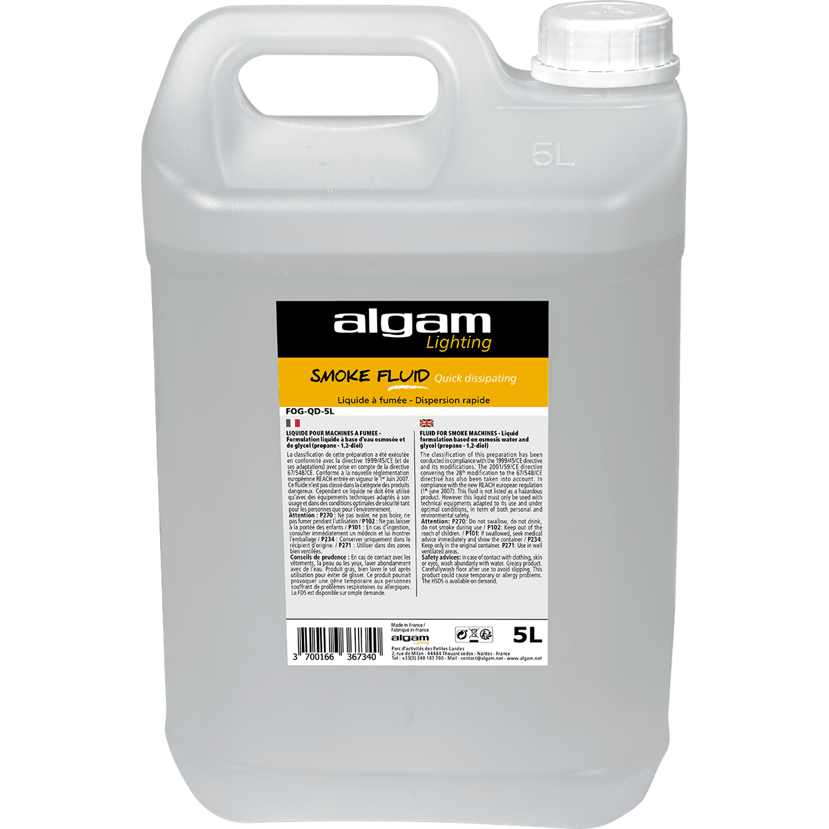 Snabb spridning är en viktig del av rökeffekter. Denna rök, som även kallas för "geysir"- eller "CO2"-effekten, är mycket tilltalande för ögat. Algam Lighting-vätskor tillverkas i Frankrike enligt en extremt strikt process, i enlighet med alla lagstadgade standarder för dessa produkter. Algam Lighting-vätskor är pålitliga och effektiva och kompatibla med de flesta maskiner på marknaden.