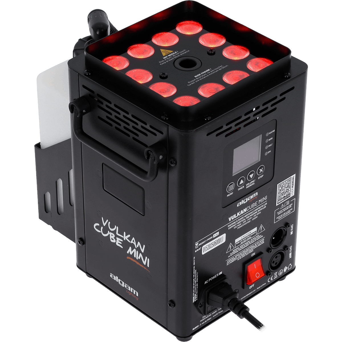 Vulkan Cube Mini producerar inte bara rök – den har också 12 RGBA 4-i-1-lysdioder som kan belysa varje rökmoln med rika, dynamiska färger. Denna kombination skapar en unik sceneffekt, perfekt för att förstärka ljusstrålar och ge energi åt en föreställning. Genom att kombinera kraften i en vertikal rökstråle med integrerade ljuseffekter ger den ett professionellt utseende som omedelbart fångar ögat, oavsett om det är på scenen, i en klubb eller på en privat tillställning. Denna maskin är kompatibel med alla typer av vätskor: låg, medel och hög densitet, samt snabbt avdunstande vätska.