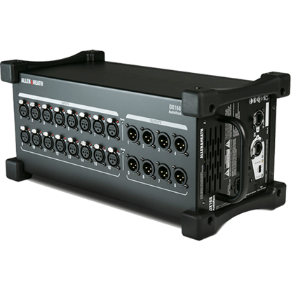 Varje DX168 har 16 mikrofonförstärkare med oberoende fantommatning som visas med LED-indikatorer, plus 8 XLR-linjeutgångar. DX168 ansluts via en enda Cat5e-kabel till dLive Surface, MixRack, SQ mixer, Avantis mixer eller uppströms DX168 via en säker EtherCon-port. En andra låsande EtherCon-port tillhandahålls för redundant anslutning till kompatibel hårdvara, eller för seriekoppling till en nedströms DX168 för ytterligare fjärr-I/O. Expanderns robusta design, med slitstarka gummistötfångare, gör att den kan placeras direkt på scengolvet under föreställningar. Med en vikt på bara 4,8 kg och med ett robust bärhandtag erbjuder DX168 den bekvämlighet och portabilitet som behövs i uthyrning, utbildning, gudstjänsthus och många andra miljöer. En valfri 4U rackmonteringssats är tillgänglig som möjliggör installation i industristandard 19-tums rack.