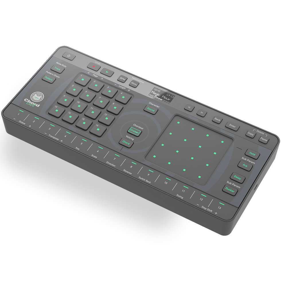 Sätt grooveboxen i Chord Cruiser-läge så väljer en exklusiv algoritm ut och föreslår flera musikaliskt kompatibla ackord från sin databas. Du kan lyssna på dessa ackord och tilldela ditt favoritackord till ett tangentbord, vilket automatiskt triggar nästa förslag.