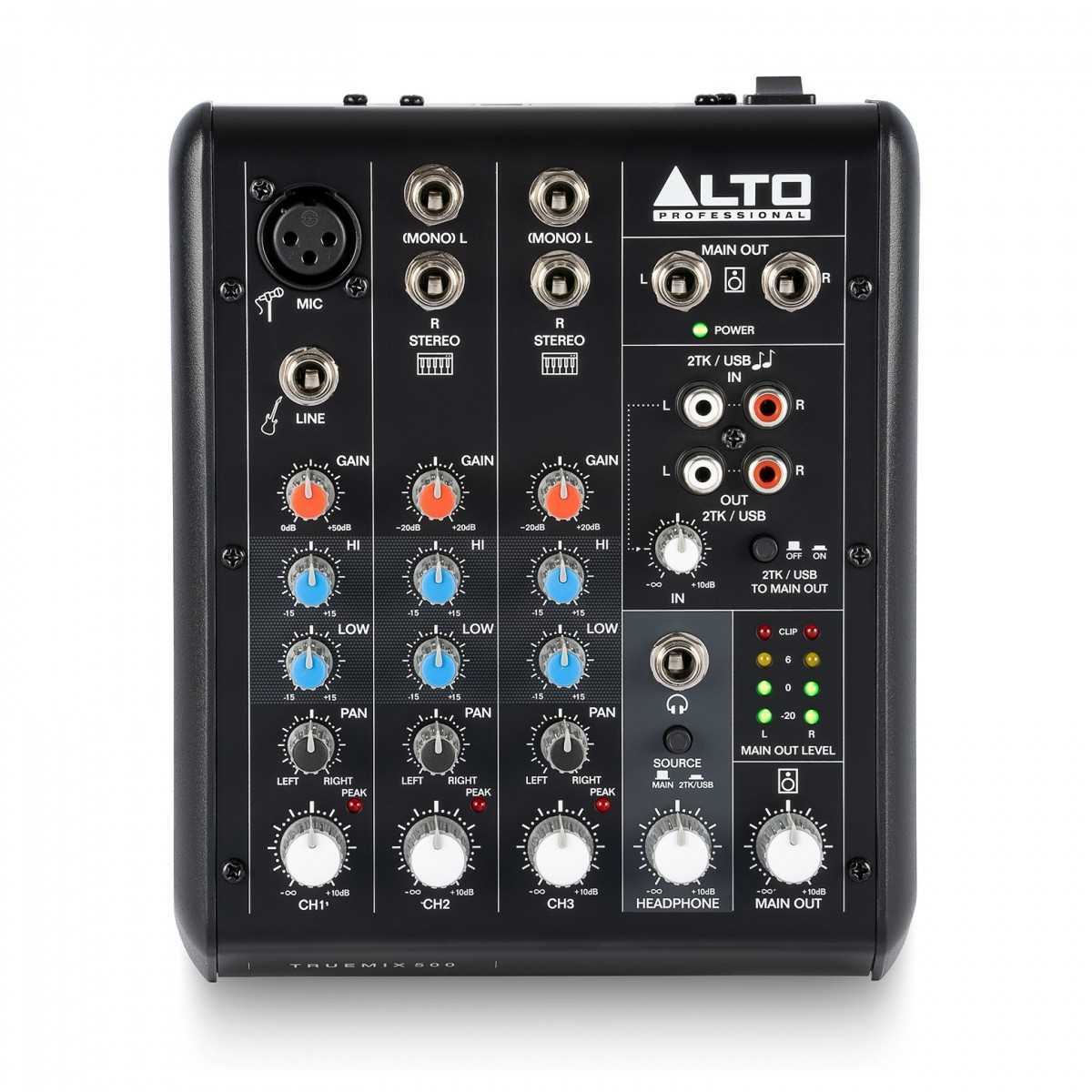 Alto Professional TrueMix 500 är en bärbar mixer med ett inbyggt stereo USB-ljudinterface som levererar alla viktiga funktioner du behöver för heminspelning, livestreaming, podcasting eller uppträdande. Det finns fem analoga ingångar med high-headroom-kretsar för minimalt brus och klippning i din signal. Mic Input Channel har en XLR-ingång som är perfekt för anslutning av en dynamisk mikrofon. Den här kanalen har också en balanserad ¼"-linjeingång för anslutning av instrument och andra signaler på linjenivå. Det finns också två Stereo Input Channels, var och en med dubbla balanserade ¼" TRS-ingångar. Dessa ingångar är perfekta för ljudkällor på linjenivå. Alla kanaler har en tvåbands EQ med färgkodade rattar som gör det enkelt att ställa in det perfekta ljudet när du arbetar i svagt ljus. Det går också blixtsnabbt att ansluta TrueMix 500 till datorn, med plug and play-anslutning till Windows och macOS. TrueMix 500 är din perfekta följeslagare för ljudmixning och inspelning utan krångel när du är på språng.