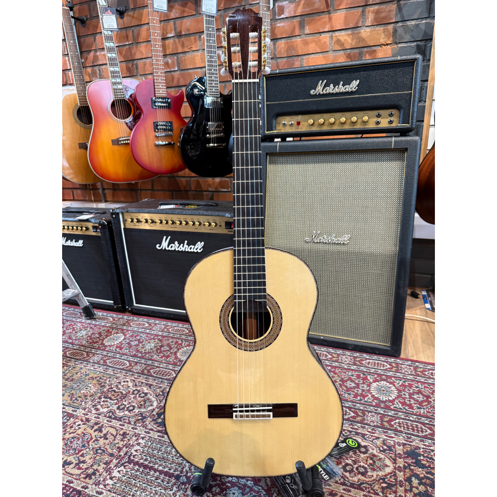 Amalio Burguet 2M Spruce från 2020 i mycket bra skick. Master instrument med sidor och botten i solid rosewood, topp i solid spruce, greppbräda i ebenholts, gjord i Spanien. Original hardcase ingår.
