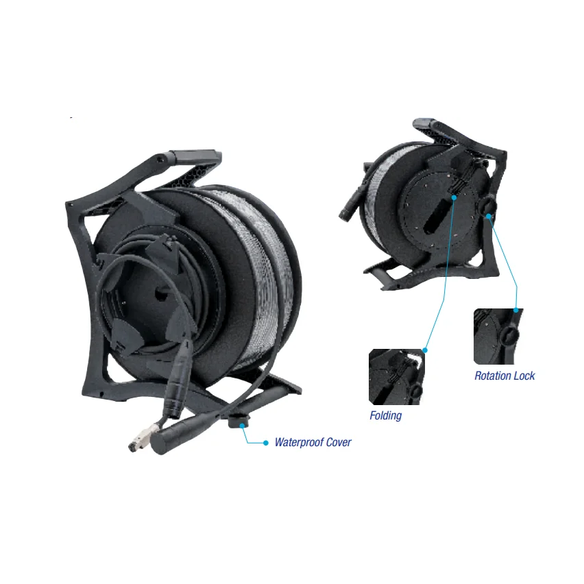 Den nydesignade rullen har ett fällbart handtag och en låsfunktion som förhindrar onödig rotation, samt en sidoficka för förvaring av extra kablar som är anslutna till husets utrustning.