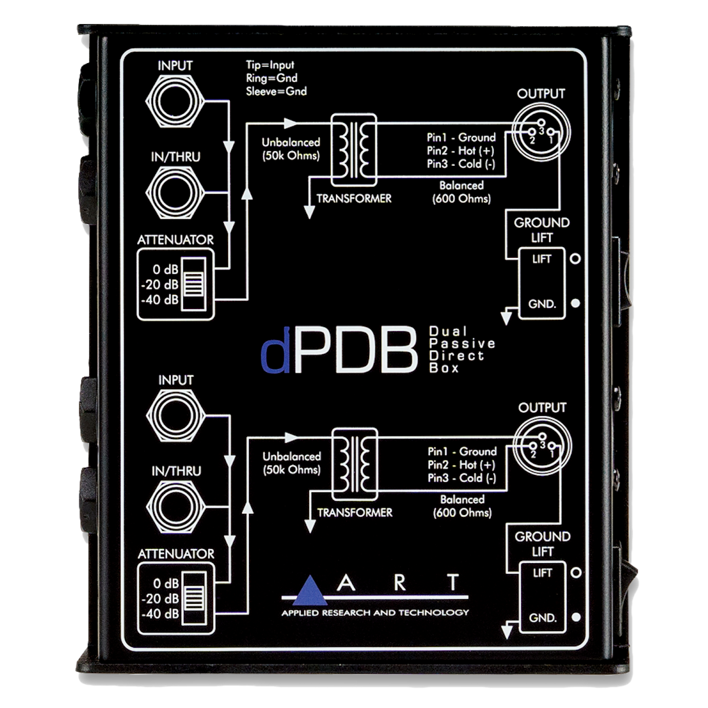 dPDB är en passiv direktbox med två kanaler för anslutning av obalanserade instrument-, linje- eller högtalarsignaler till balanserade ingångar.