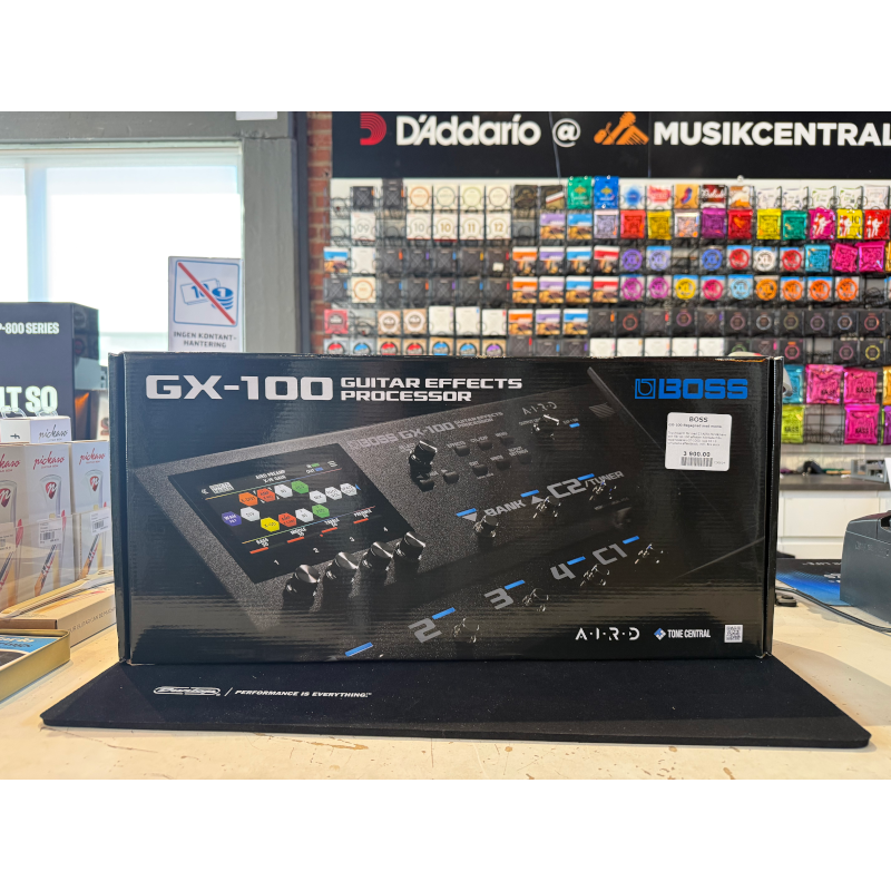 Boss GX-100 är en multieffekt med touchskärm för gitarr med 23 AIRD-förstärkare och fler än 150 effekter tagna från toppmodellen GT-1000. Upp till 15 simultana effektblock ger dig obegränsade ljudmöjligheter och kan kontrolleras på djupet i realtid via inbyggda fotomkopplare.
