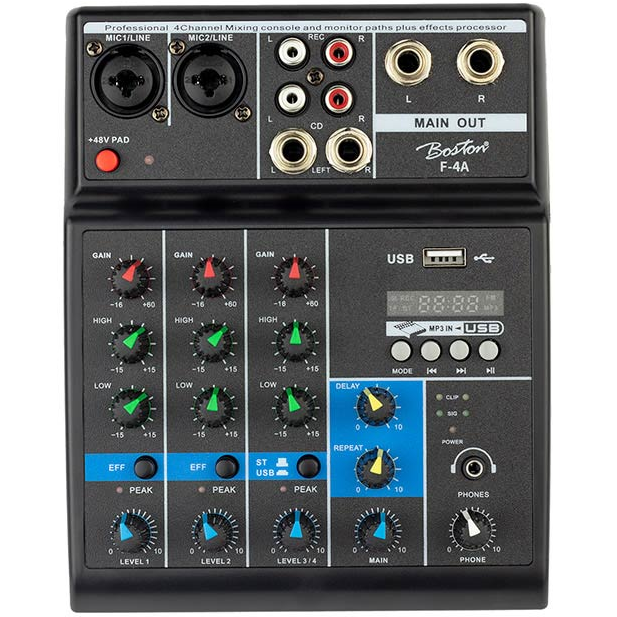 - Mikrofoningångskanal med 48 V fantommatning och balanserad linjeingång