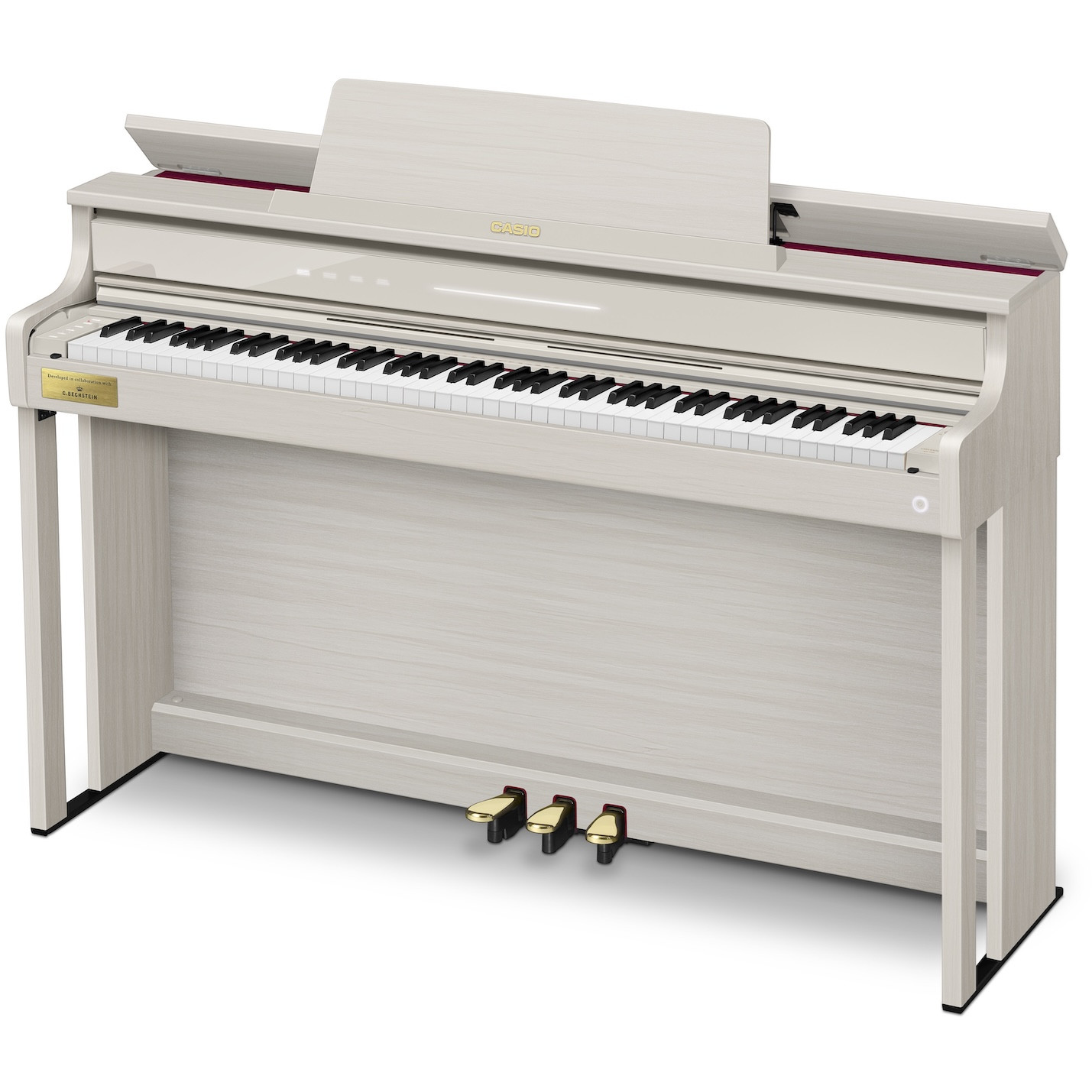 Med en stilren design, Smart Hybrid Hammer Action-tangenter med träklaviatur och ett samarbete med C. Bechstein för autentiskt och fördjupande ljud är Casio AP750 späckad av innovativa funktioner för att höja ditt musikskapande.