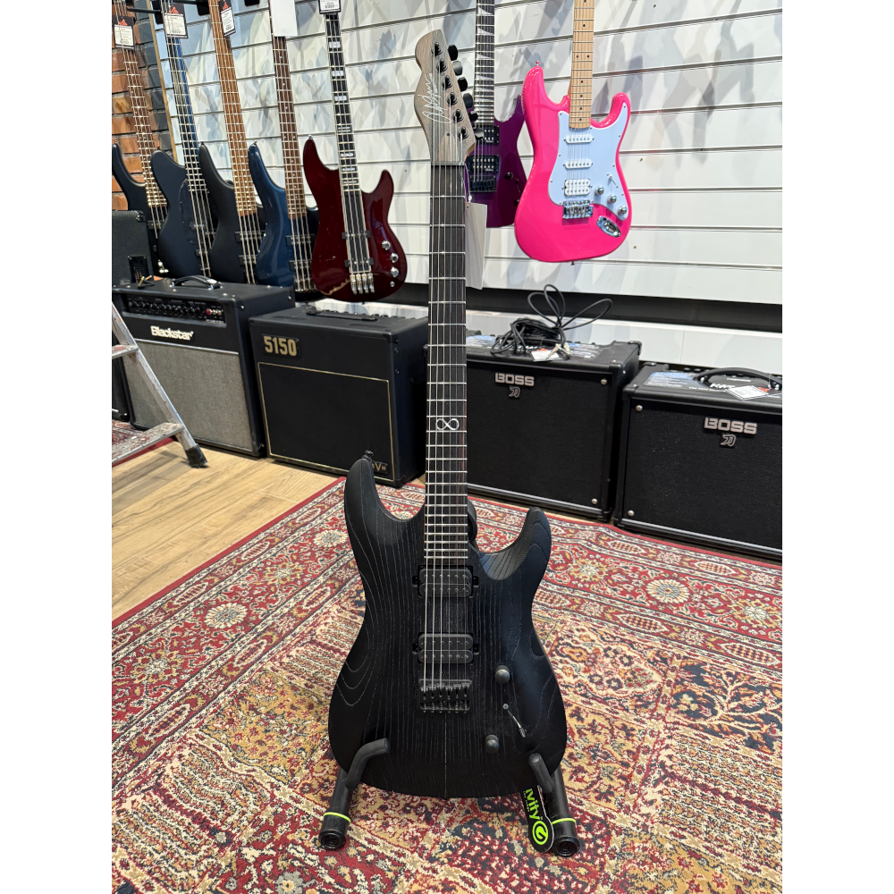Mycket bra skick! Kropp Ask med solid ask topp. Genomgående halls i rostad lönn C-shape med ebenholts greppbräda 24 rostfria band. Mickar Seymour Duncan Sentient (hals) & Peasus (stall). hardbag ingår