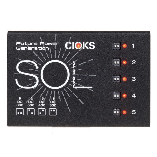 SOL har samma 660 mA vid 9 V DC per uttag och fyra omkopplingsbara spänningar på varje uttag som sin större bror CIOKS DC7, och är den kraftfullaste strömförsörjningen i liten format som finns på marknaden idag, med totalt 30 watt DC-effekt.