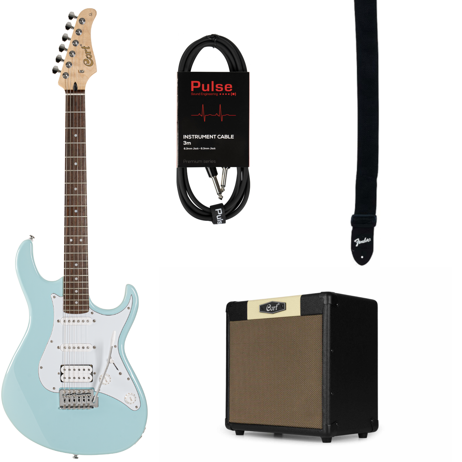 Elgitarr: Cort G200 Sky Blue. 3 meters telekabel och axelband ingår.
