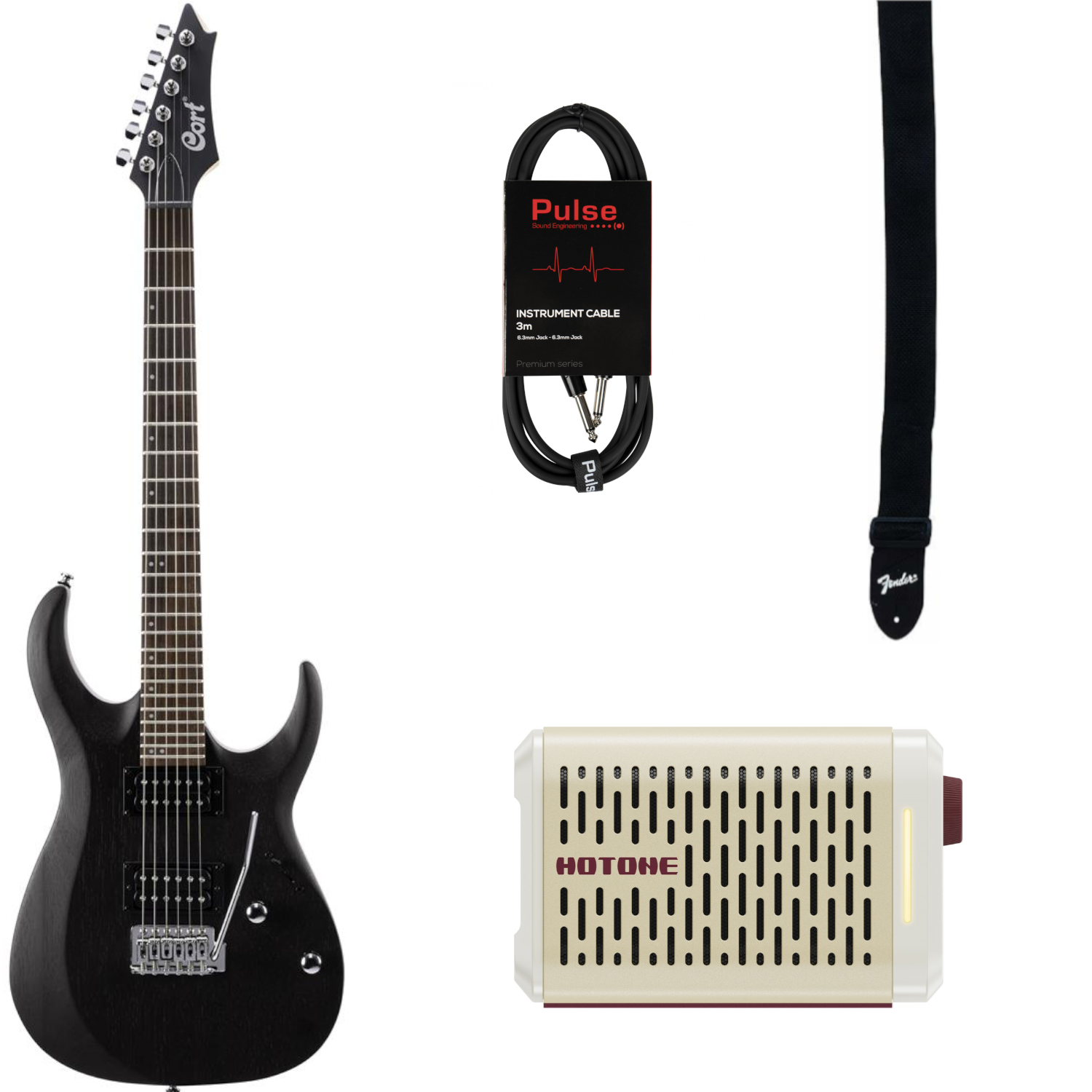 Elgitarr: Cort X100 Black. 3 meters telekabel och axelband ingår.