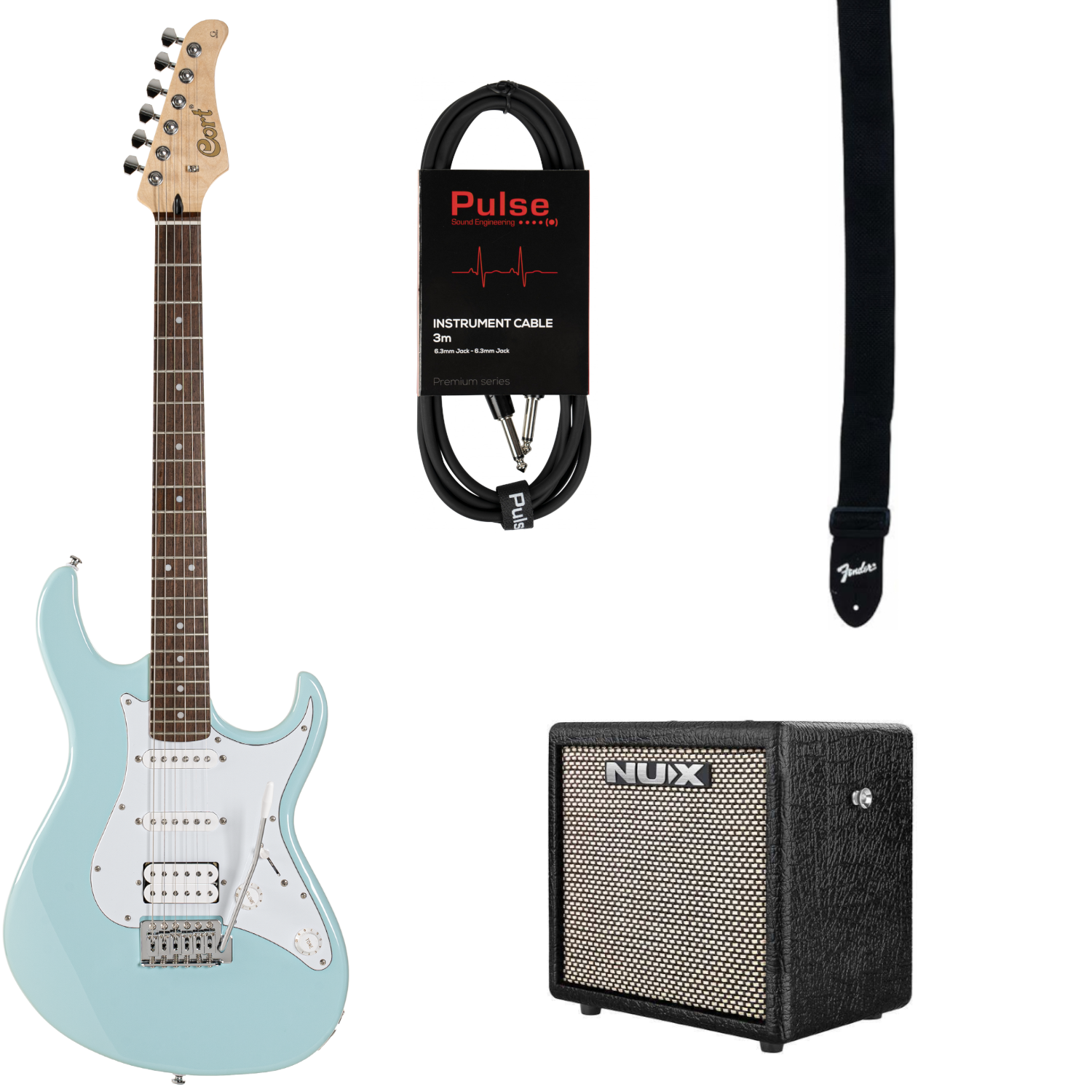 Elgitarr: Cort G200 Sky Blue. 3 meters telekabel och axelband ingår.