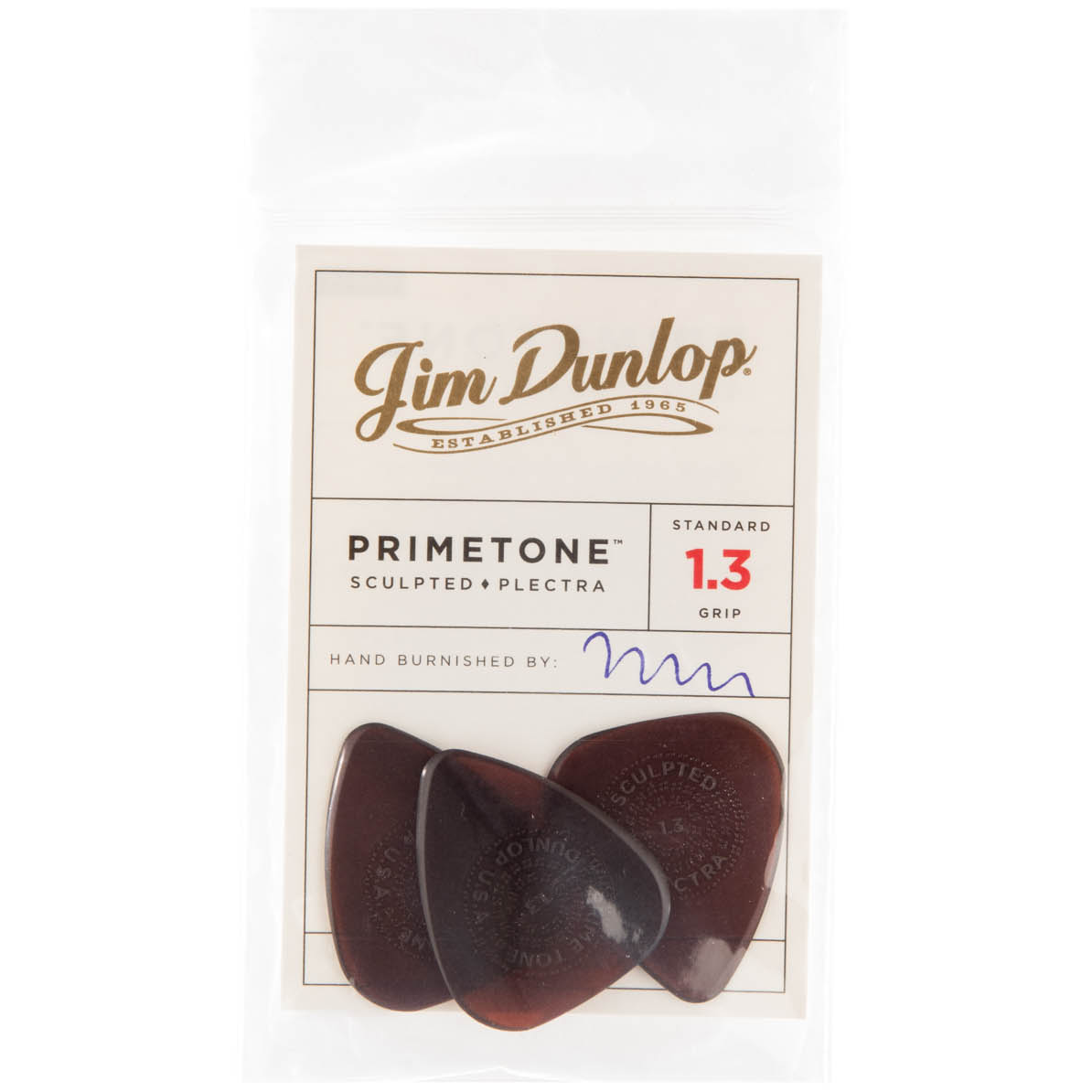510P.130, här i 3-pack, är ett handpolerat plektrum från Dunlop, tillverkat i USA. Tjocklek 1,3 mm.