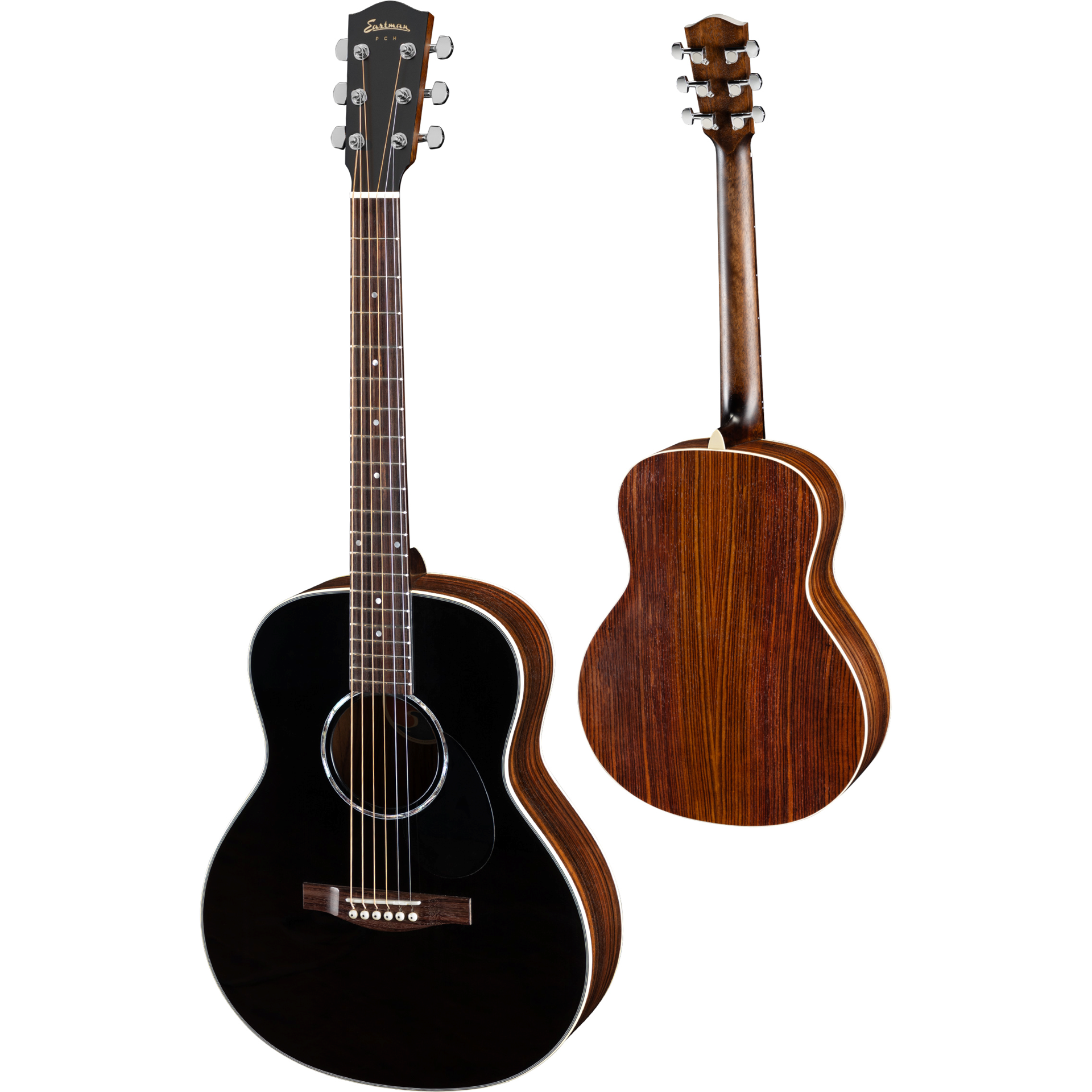 Eastman PCH2-TG är en stålststrängad gitarr i PCH serien Travel med lock i solid sitkagran, sidor och botten i laminerad rosewood, hals i lönn samt greppbräda i rosewood. Levereras med en "Padded Eastman Gig Bag".