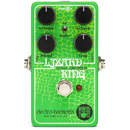 Lizard King är frukten av det tidigare samarbetet medllan Electro Harmonix och JHS som resulterade i Lizard Queen. Lizard King är optimerad för bas och levererar den där sträva torra, dynamiska kombinerad Fuzz- och Oktaveffekten utan att tappa fokus på de lägre registren. Med Blend- och Tone-kontrollerna mixar du in och justerar enkelt effekterna med basens grund-sound.