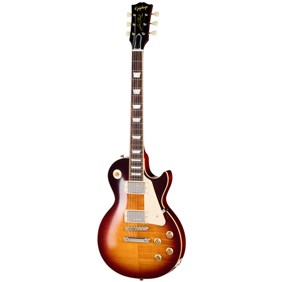 Gibson Les Paul™ Standard från 1959 är en av världens mest eftertraktade - och värdefulla - vintagegitarrer. Den har anammats av många kända spelare, bland andra Peter Green, Kirk Hammett och Joe Bonamassa. 1959 Les Paul Standard är mycket lik 1960 års modell som följde efter den, men med några skillnader, framför allt en något kraftigare 1959 Rounded Medium C-hals profil som många spelare föredrar framför den tunnare SlimTaper™-profilen som finns på 1960 års Les Paul Standard-modeller. Nu är Epiphone stolta över att kunna presentera Epiphone 1959 Les Paul Standard Reissue, en vacker återskapelse av de sällsynta 1959 Les Paul Standard-modellerna. Epiphone 1959 Les Paul Standard Reissue är tillverkad i samarbete med Gibson Custom och levererar vintage Les Paul-utseende och prestanda till ett tillgängligt pris. Alla de klassiska detaljer som 1959 års Les Paul Standard-modell är känd och älskad för finns här, inklusive en mahognyhals i ett stycke med en lång halstapp för ökad stabilitet och sustain, en autentisk 1959 Rounded Medium C-halsprofil och en bundna greppbräda i rosewood. Den har också pärlemor trapezoid greppbrädesinlägg, en åldrad pärlemor Epiphone headstock-logotyp och orden "Les Paul Model" silkscreenade i guld på Gibson-stilen "open book" headstock.