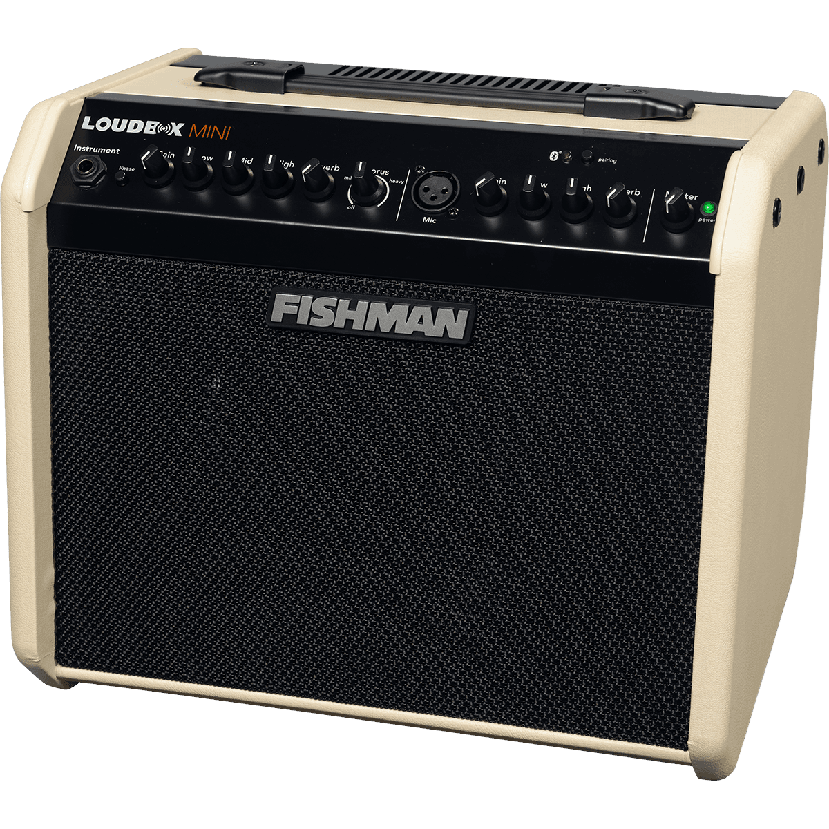 PRO-LBT-500-CR. Loudbox Mini är en akustisk gitarrförstärkare på 60 watt bestyckad med 6.5" baselement 1" diskant. Loudbox har inbyggt reverb, chorus och bluetooth 4.0. 2 kanaler med 1st 6,3 mm Gitarringång och 1st XLR ingång för mikrofon, auxingång samt D.I utång med balanserad XLR. Cover eller mjuk väska finns som tillbehör.