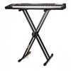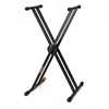 Dubbelstagat, kraftigt keyboardstativ med patenterad låsningsmekanik för säker höjdinställning.