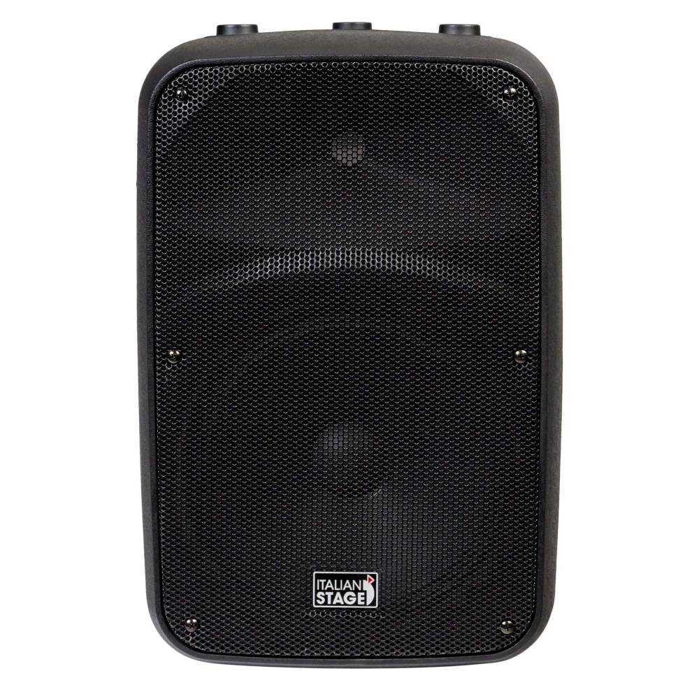 10-tums bärbar högtalare med batteri, MP3-spelare, SD-kort, USB, Bluetooth, IR-kontroll. - 1 VHF trådlös mikrofon. - Woofer 10 tum. - Horn-drivrutin 1 tum. - RMS-effekt 50 W klass D-förstärkare. - Topp effekt 100 W. - Känslighet 1 W/1 m 90 dB. - Frekvensrespons 40 Hz–18 kHz.