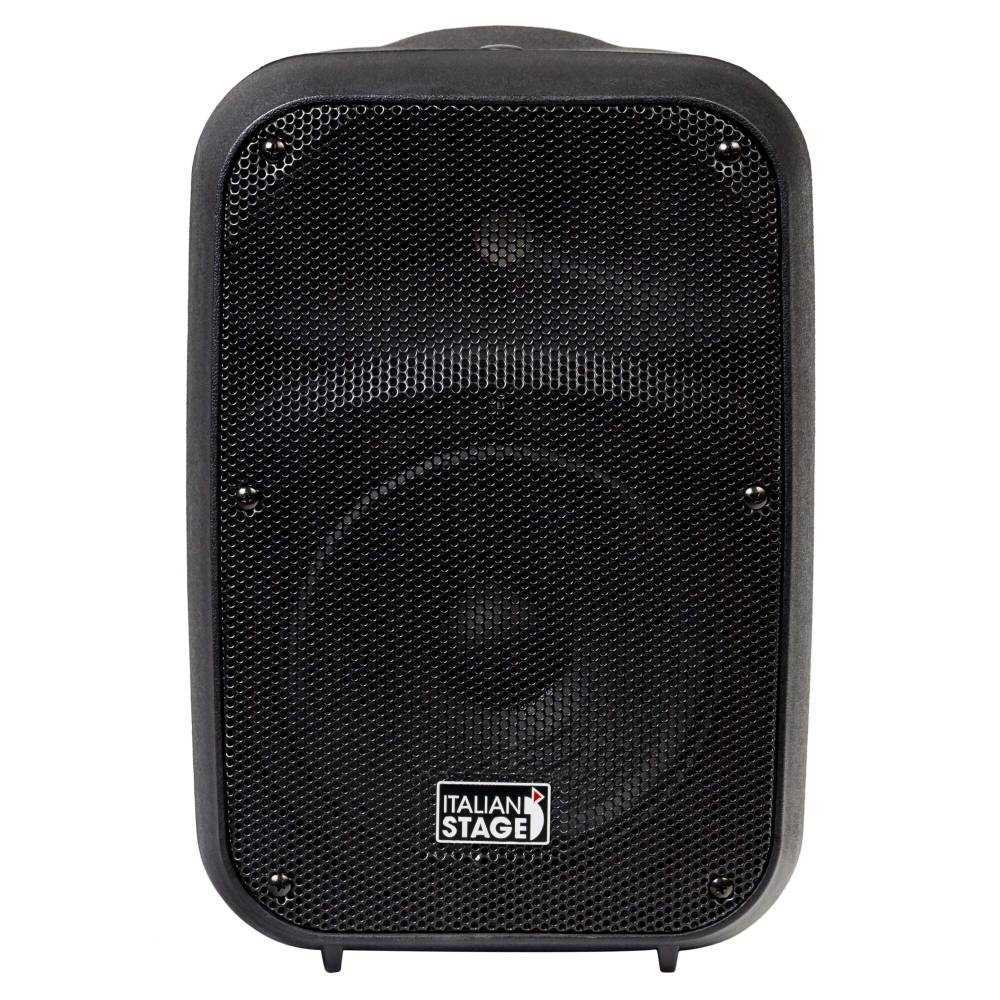 8-tums bärbar högtalare med batteri, MP3-spelare, SD-kort, USB, Bluetooth, IR-kontroll. - 1 VHF trådlös mikrofon. - Woofer 8 tum. - Horn-drivrutin 1 tum. - RMS-effekt 30 W klass D-förstärkare. - Topp effekt 60 W. - Känslighet 1 W/1 m 88 dB. - Frekvensrespons 50 Hz–18 kHz.
