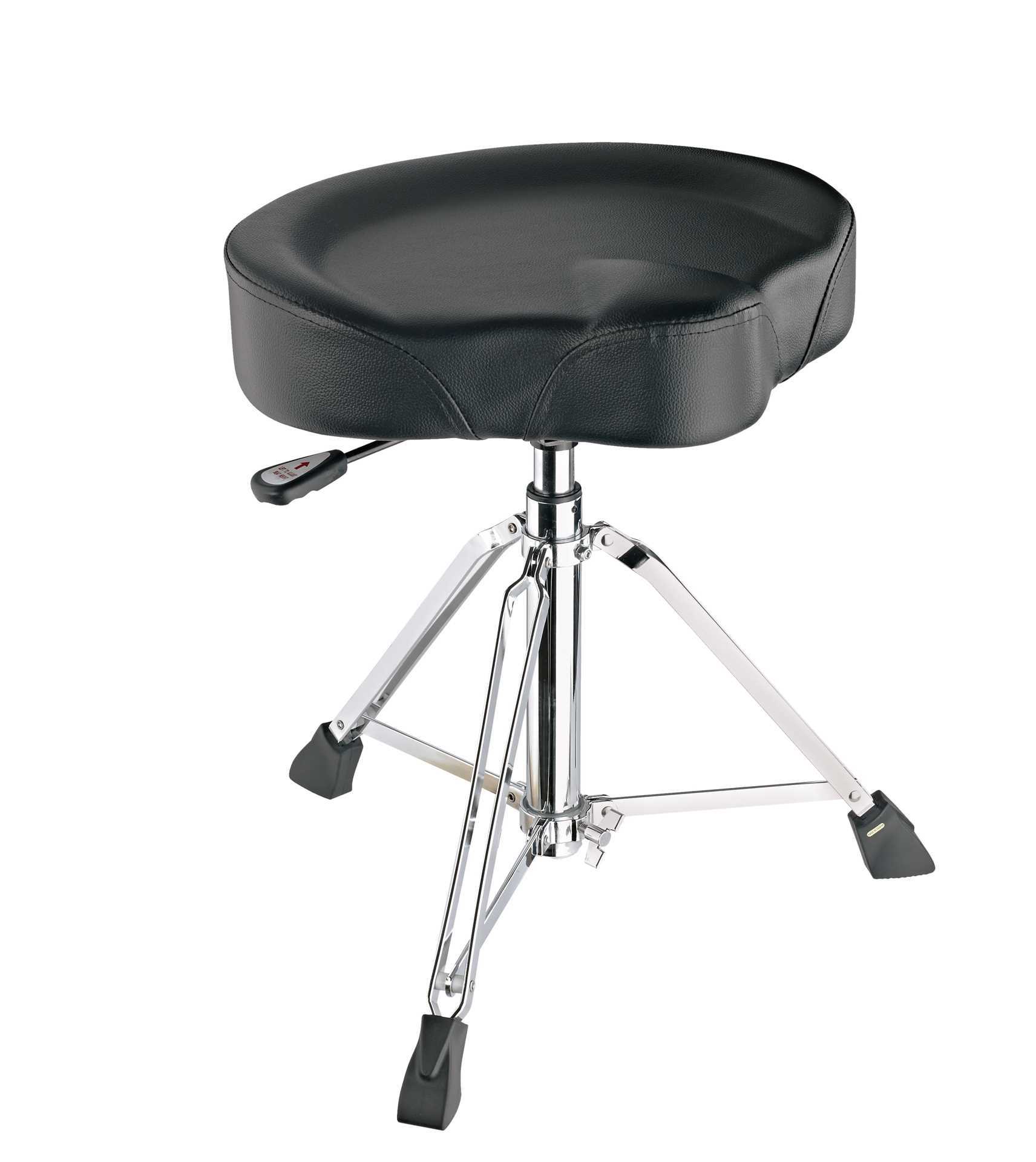 Den solida trumstolen erbjuder den kvalitet, komfort och stabilitet som professionella trumslagare kräver. Den ergonomiskt formade och omsorgsfullt stoppade sitsen med konstläderklädsel ger överlägset stöd för bakdelen och rörelsefrihet. Den bekväma höjdjusteringen är resultatet av en integrerad pneumatisk fjäder, som frigörs med en spak under sitsen. Den steglösa höjdjusteringen sträcker sig från 495 till 680 mm. De tre dubbelstagade benen och de stora gummifötterna garanterar en stabil ställning.