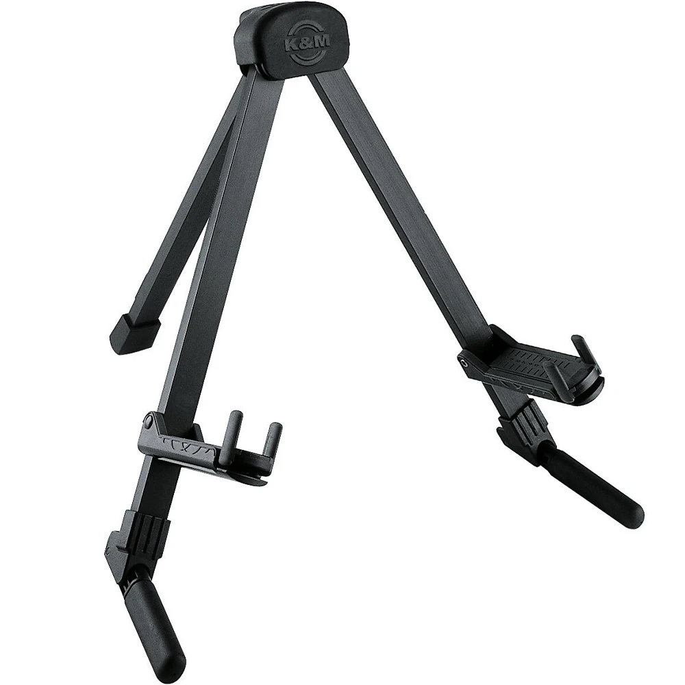 Ultrakompakt gitarrställ som passar el- eller akustisk gitarr.