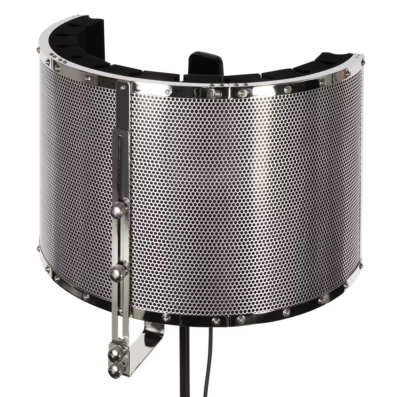 Akustikskärm för sånginspelning i hemmamiljö som tar bort oönskade rumsreflektioner från mikrofonupptagningen.