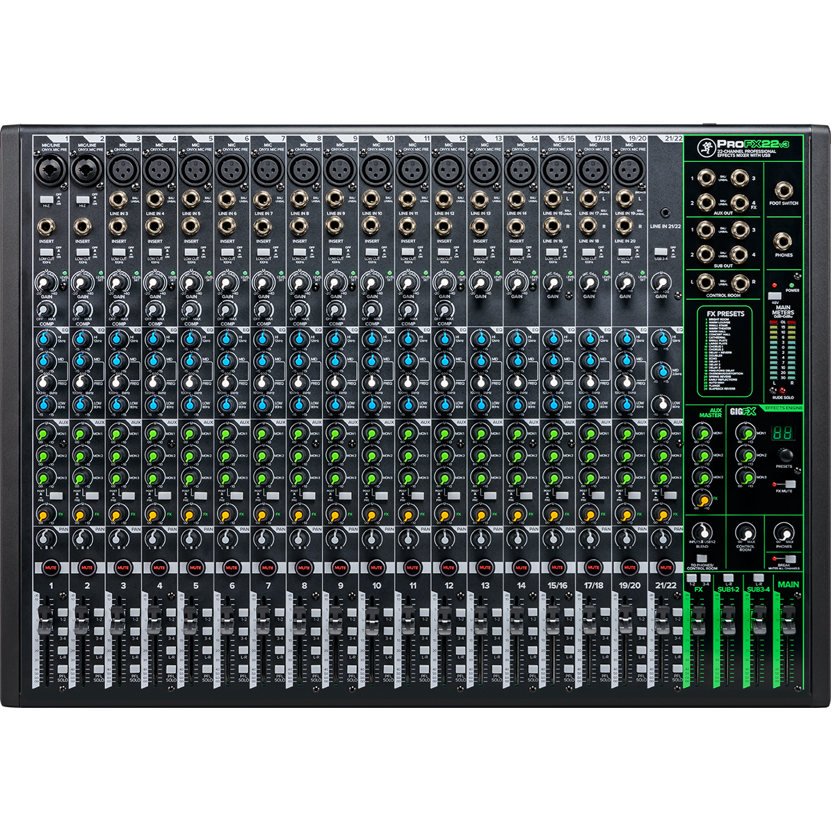 ProFX22v3 är en analog mixer från Mackie med totalt 22 ingångar inklusive 17 st ONYX mikpreampar med fantommatning och 2 stereoingångar. Mixern har även inbyggda 24-bits effekter, USB för in- och uppspelning till dator, balanserade högtalarutgångar samt hörlursutgång.