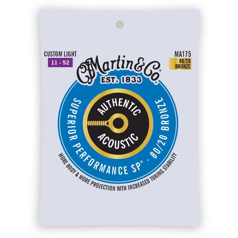 Martin Guitar Authentic Acoustic Superior Performance 80/20 Bronze - Custom Light MA175