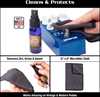 Guitar Pedal Detailer är medlet du använder för att ta bort smuts, svett och annat som kan ha fastnat på pedalen och det fungerar på plast, metall och även gummi. För att göra ren och putsa pedalen så används mikroduken som är luddfri.