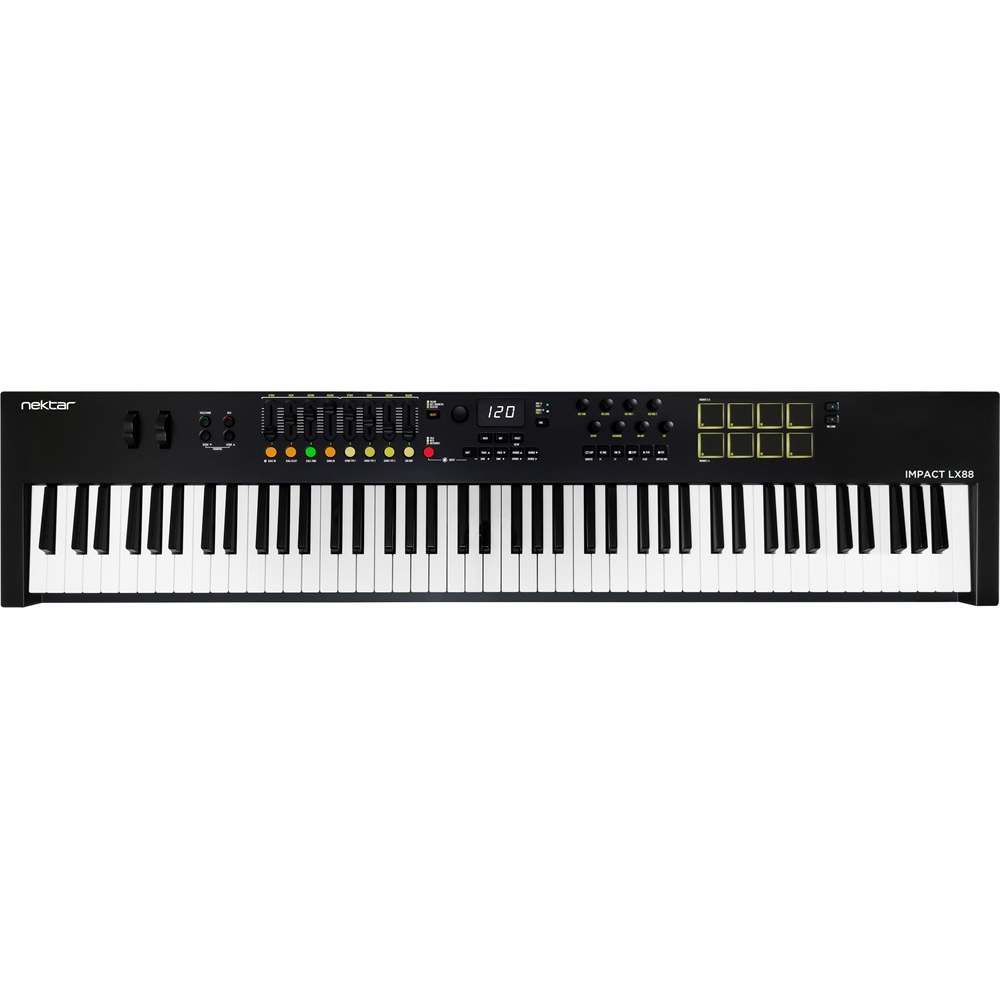 Nektar Impact LX88 mk3 är en kraftfull och mångsidig MIDI-klaviatur med 88 anslagskänsliga semivägda pianoliknande tangenter och en ny, förbättrad tangentmekanik som ger en mer uttrycksfull spelkänsla. Klaviaturen är utrustad med 8 pads med LED-belysning, 9 programmerbara rattar, 8 faders och dedikerade transportkontroller – allt med djup integration för populära DAW-program som Logic, Cubase, FL Studio, Ableton Live och fler. Med Nektars DAW-integration får du direkt åtkomst till mixning, inspelning och instrument utan att behöva konfigurera något manuellt. LX88 mk3 är också NKS-kompatibel, vilket gör det enkelt att styra kompatibla plug-ins med full parameterkontroll. Med funktioner som Scale Mode, Smart Chord och Hold Mode får du kreativa verktyg som hjälper dig att skapa musik på ett snabbt och inspirerande sätt. Impact LX88 mk3 är ett utmärkt val för pianister och producenter som söker en MIDI-kontroller med fullstort tangentbord, kraftfull kontroll och smidig integration i moderna musikmiljöer.
