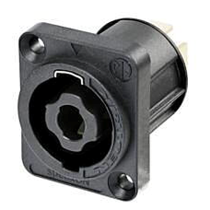 4-polig Speakon-kontakt (hane) för chassimontering. Svart utförande.