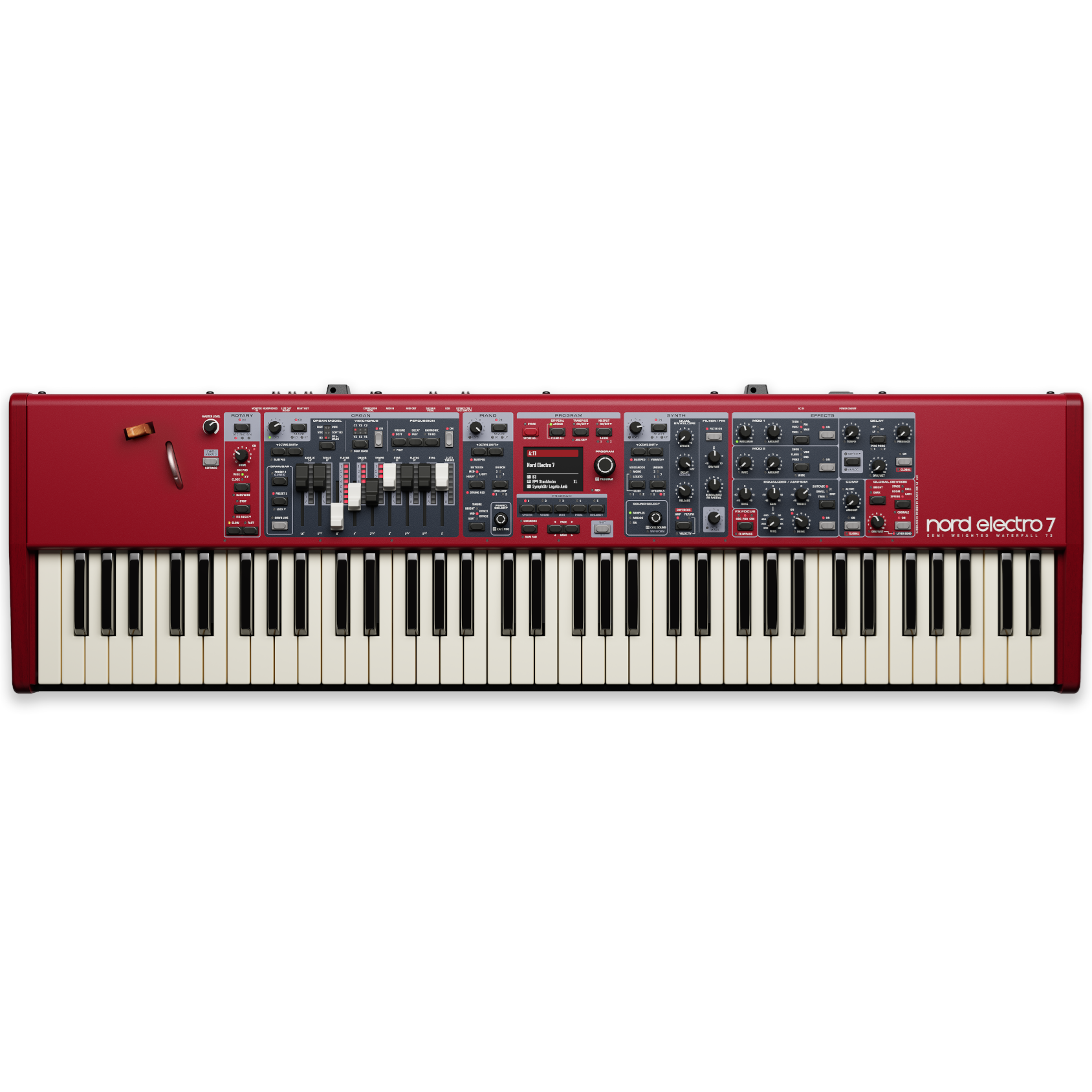 Nord Electro 7 lyfter Electro-serien till en ny nivå med en kraftfull ny synthsektion, dedikerade effekter för varje sektion och en förfinad paneldesign med en högupplöst färgskärm. Nord Electro 7 kombinerar våra senaste pianofunktioner med orgeln och rotationshögtalaren från den hyllade Nord Organ 3 och erbjuder exceptionell mångsidighet i ett lätt, scenklart instrument.