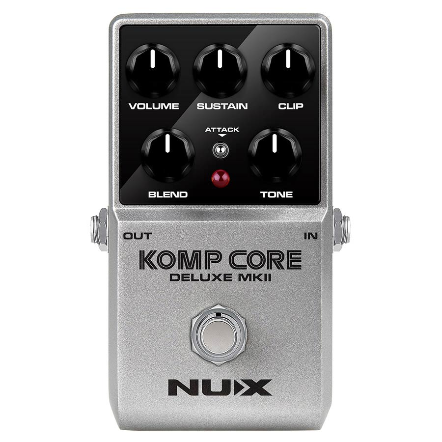 NUX NCC-2 Komp Core Deluxe MKII är en mångsidig analog kompressorpedal som ger din pedalboard kompression i studioklass. Den är utformad för gitarr, bas och till och med keyboard och erbjuder precis dynamisk kontroll samtidigt som den bevarar instrumentets naturliga ton. Med fem reglage och en vippbrytare kan spelare forma sitt ljud i detalj – från subtil sustain till kraftfull, klippt dynamik. Tack vare sitt blandningsreglage och sin lågbrusiga design levererar Komp Core Deluxe MKII klarhet, balans och ett polerat ljud i både live- och studiomiljöer.
