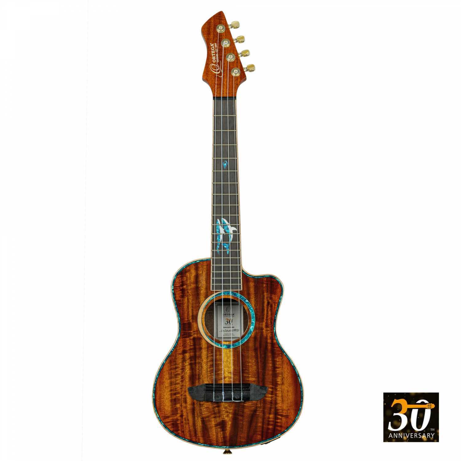 För att fira Ortega Guitars 30-årsjubileum, presenteras fyra tenor ukuleles, två utsökta nylonsträngade gitarrer och fyra 17-tons kalimbas.