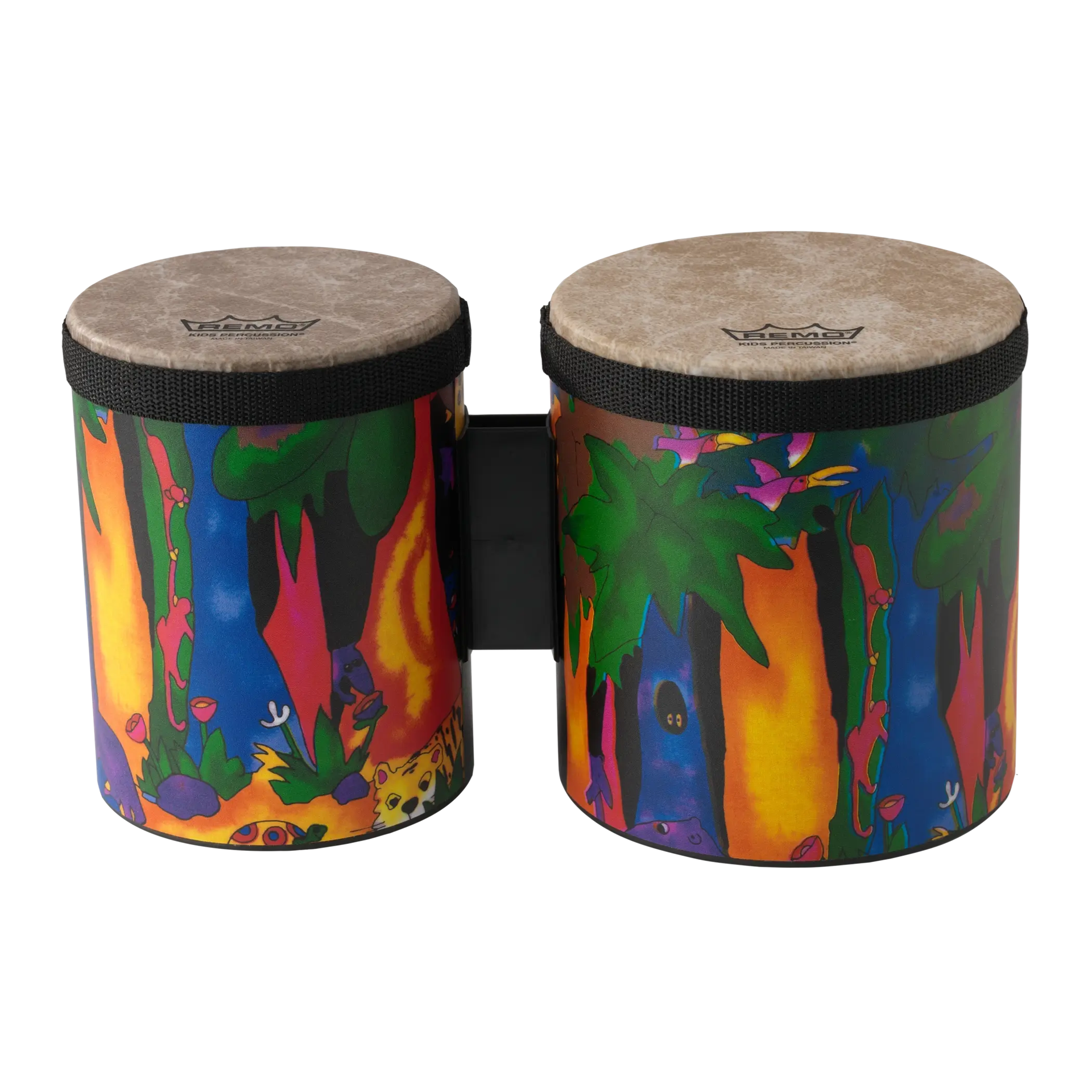 Kids Percussion® Bongo har Skyndeep® förinställda trumskinn med hög och låg tonhöjd och en rolig regnskogsgrafik. Introducerar barn från 3 år till rytm på ett roligt och engagerande sätt. Kids Percussion Bongo är tillverkad med Acousticon-skal och är en viktig del av slagverksfamiljen av rytminstrument. Den introducerar barn på ett lekfullt sätt till den grundläggande byggstenen i all musik, nämligen rytm.
