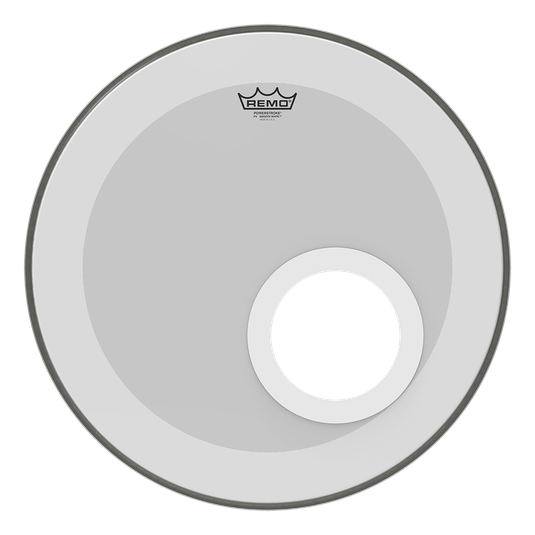 Enlagers resonans frontskinn för bastrumma i coatad vitt utförande. Storlek: 20" med ett 5" runt hål.