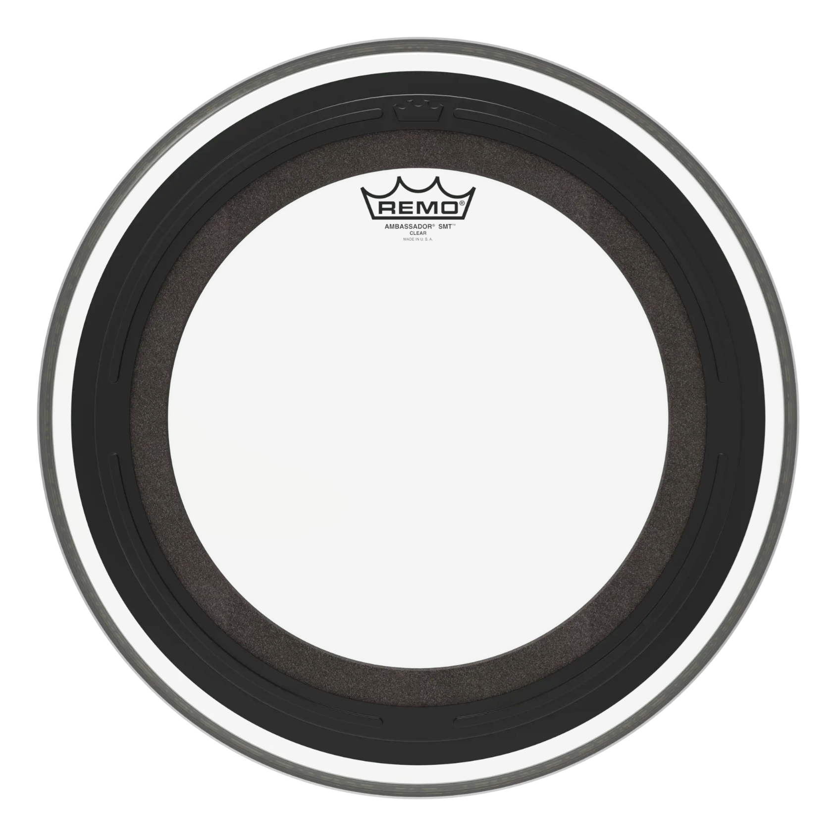 Ambassador® SMT™ Clear bastrumskinn är en förmuffad design med Sub Muffl® Technology. Det är konstruerat med en Clear 10-mil single-ply film och en externt monterad dämpningsprofil med fritt flytande akustiskt skum. Det gör att skaftet och trumskalet bibehåller fulla ljudegenskaper med extra attack och låga frekvenser. SMT-tekniken ger ett brett tonalt spektrum med kontrollerade höga och mellersta frekvenser i kombination med djupa, kraftfulla låga toner. Det är en ny industristandard och ett av marknadens mest musikaliska och mångsidiga förmuffade bastrumskinn. Perfekt för live- och inspelningsapplikationer.