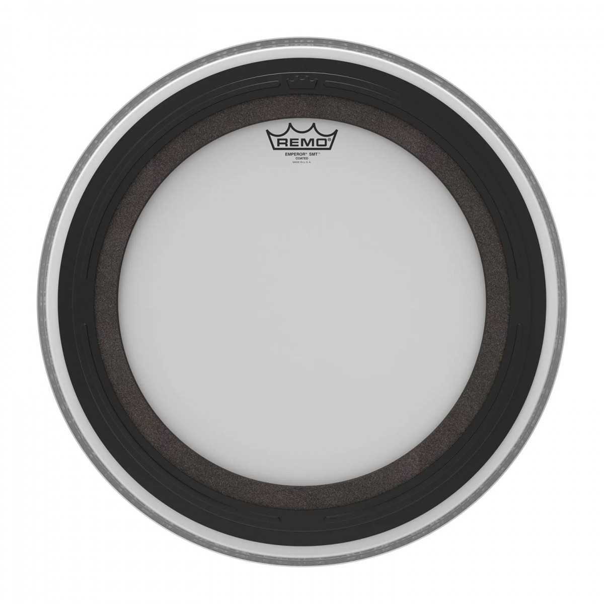 Emperor® SMT™ Coated bastrumskinn är en förmuffad design med Sub Muffl® Technology. Det är konstruerat med 2 lager 7-mil och 5-mil Coated-film och en externt monterad dämpningsprofil med fritt flytande akustiskt skum. Det gör att skaftet och trumskalet kan bibehålla fulla ljudegenskaper med extra attack och låga frekvenser. SMT-tekniken ger ett brett tonalt spektrum med kontrollerade höga och mellersta frekvenser i kombination med djupa, kraftfulla låga toner. Det är en ny industristandard och ett av marknadens mest musikaliska och mångsidiga förmuffade bastrumskinn. Perfekt för live- och inspelningsbruk. Finns i storlekarna 16” till 24”.