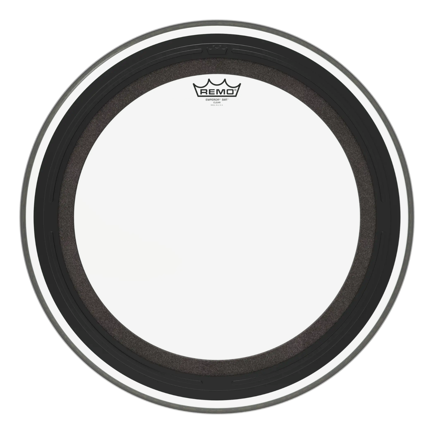 Emperor® SMT™ Clear bastrumskinn är en förmuffad design med Sub Muffl® Technology. Det är konstruerat med 2 lager 7-mil och 5-mil Clear-film och en externt monterad dämpningsprofil med fritt flytande akustiskt skum. Det gör att skaftet och trumskalet kan bibehålla fulla ljudegenskaper med extra attack och låga frekvenser. SMT-tekniken ger ett brett tonalt spektrum med kontrollerade höga och mellersta frekvenser i kombination med djupa, kraftfulla låga toner. Det är en ny industristandard och ett av marknadens mest musikaliska och mångsidiga förmuffade bastrumskinn. Perfekt för live- och inspelningsbruk. Finns i storlekarna 16” till 24”.