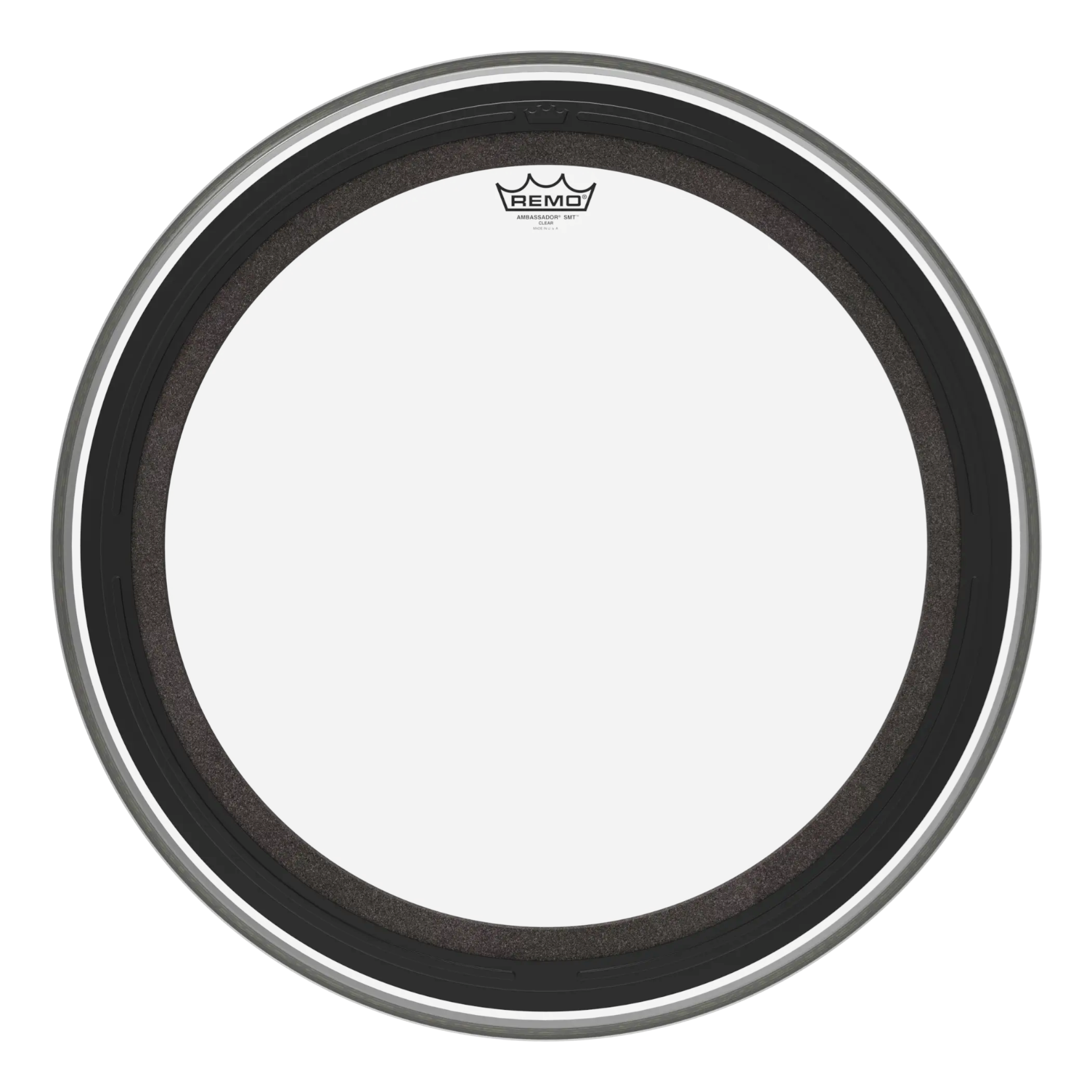 Ambassador® SMT™ Clear bastrumskinn är en förmuffad design med Sub Muffl® Technology. Det är konstruerat med en Clear 10-mil single-ply film och en externt monterad dämpningsprofil med fritt flytande akustiskt skum. Det gör att skaftet och trumskalet bibehåller fulla ljudegenskaper med extra attack och låga frekvenser. SMT-tekniken ger ett brett tonalt spektrum med kontrollerade höga och mellersta frekvenser i kombination med djupa, kraftfulla låga toner. Det är en ny industristandard och ett av marknadens mest musikaliska och mångsidiga förmuffade bastrumskinn. Perfekt för live- och inspelningsapplikationer.