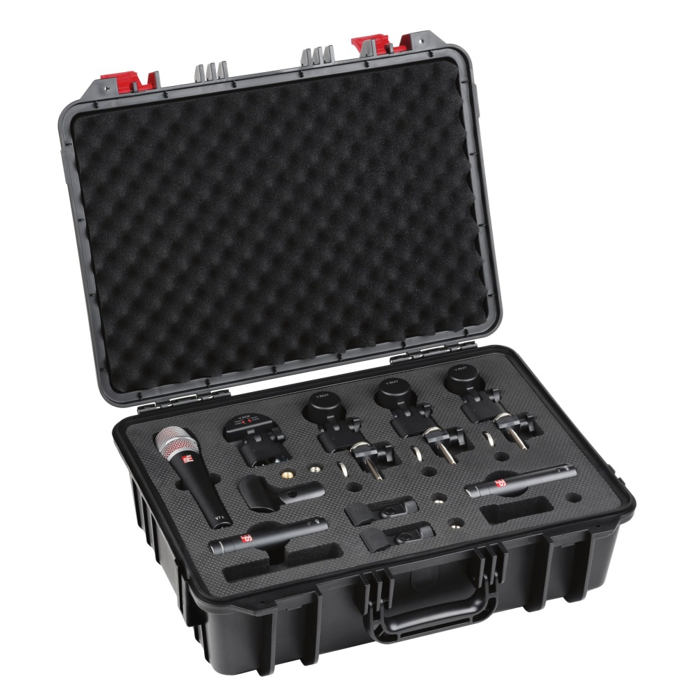 Packet är komplett med sargfästen till pukmickarna & klykor att fästa på golvstativ (ingår ej) till dom övriga. Allt levereras i en otroligt robust & rejäl hardcase med formskuren foam så allt ligger väl skyddat & säkert vid transport.