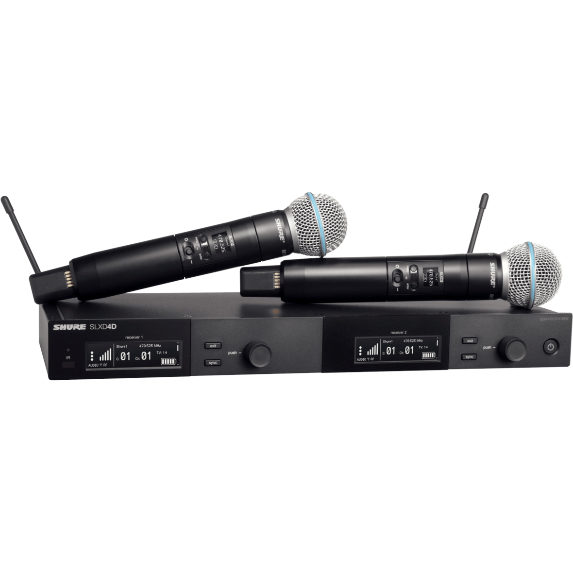 SLXD24D/B58 har två dynamiska Beta 58 superkardioidmikrofonkapslar på SLXD2 handhållna trådlösa sändare och ger transparent digitalt ljud och en bergfast RF-stabilitet för föreläsningssalar och liveframträdanden. Frekvensområde: S50 (823-865MHz)
