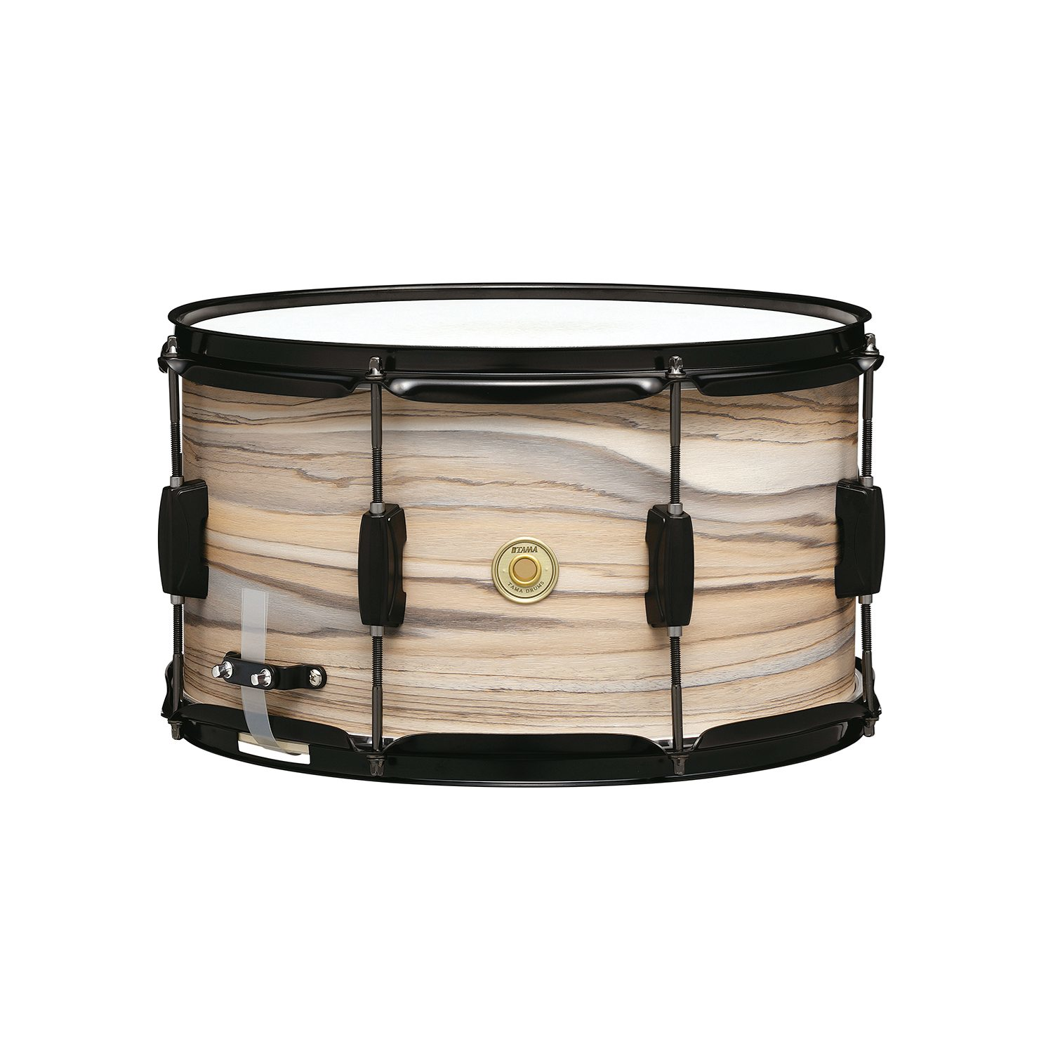 Tama Woodworks Poplar Snare - WP148BK-NZW (Natural Zebrawood Wrap). 14"x 8".Woodworks serien ligger prismässigt under SLP serien och har stomme av poppel och erbjuds itvå olika finishar.e.