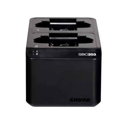 Laddstation med dubbel dockning för två SLXD-sändare med SB903 litiumjonbatterier. Laddstationen kan även ladda SB903 batterier separat. Ladda två SB903-batterier, två beltpackssändare, två handhållna sändare eller en kombination av dessa.
