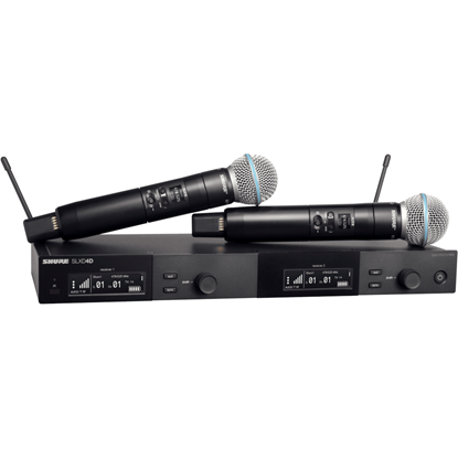 Med två legendariska dynamiska SM58 Cardioid-mikrofonkapslar på SLXD2 handhållna trådlösa sändare ger SLXD24D/SM58 transparent digitalt ljud och bergfast RF-stabilitet för föreläsningssalar och liveframträdanden.